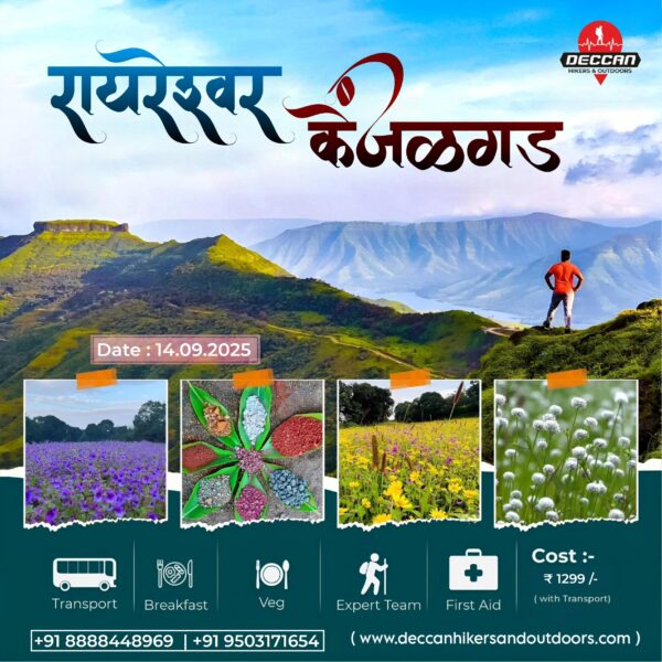 8 September, 2025•By: deccanhikersandoutdoors.com Raireshwar – Kenjalgad Flower Special Trek ₹0.01 Raireshwar – Kenjalgad Flower Special Trek quantity Add to cart Leave a Reply Cancel replyYour email address will not be published. Required fields are marked *Comment * Name * Email * Website Save my name, email, and website in this browser for the next time I comment.