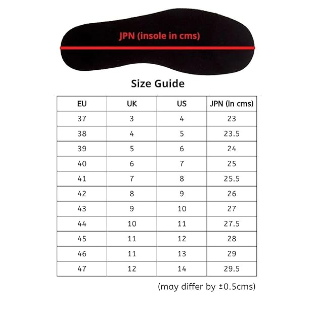 Measure your foot in centimeters (CM) and refer to the Actual Foot Size Chart for the perfect fit.