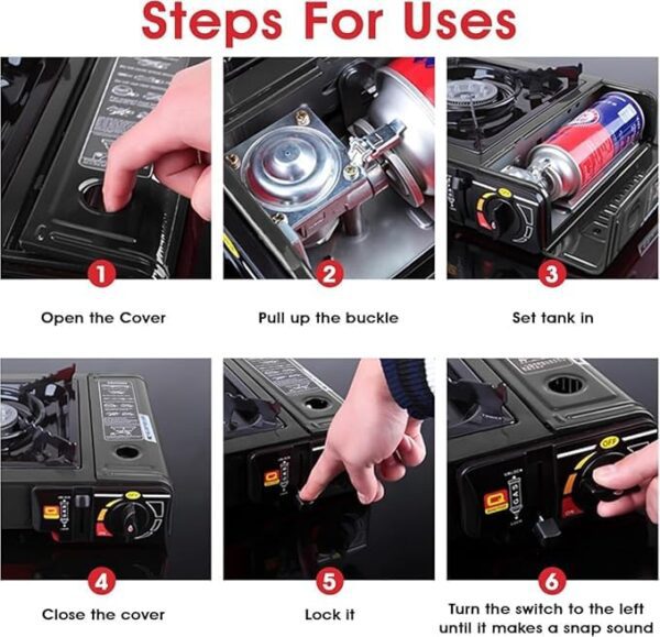 Camping Portable Gas Stove Use With Dual Mode LPG Cylinder And Butane Gas Can,gas Chulha For Outdoor Travel Stove, tracking (Black)