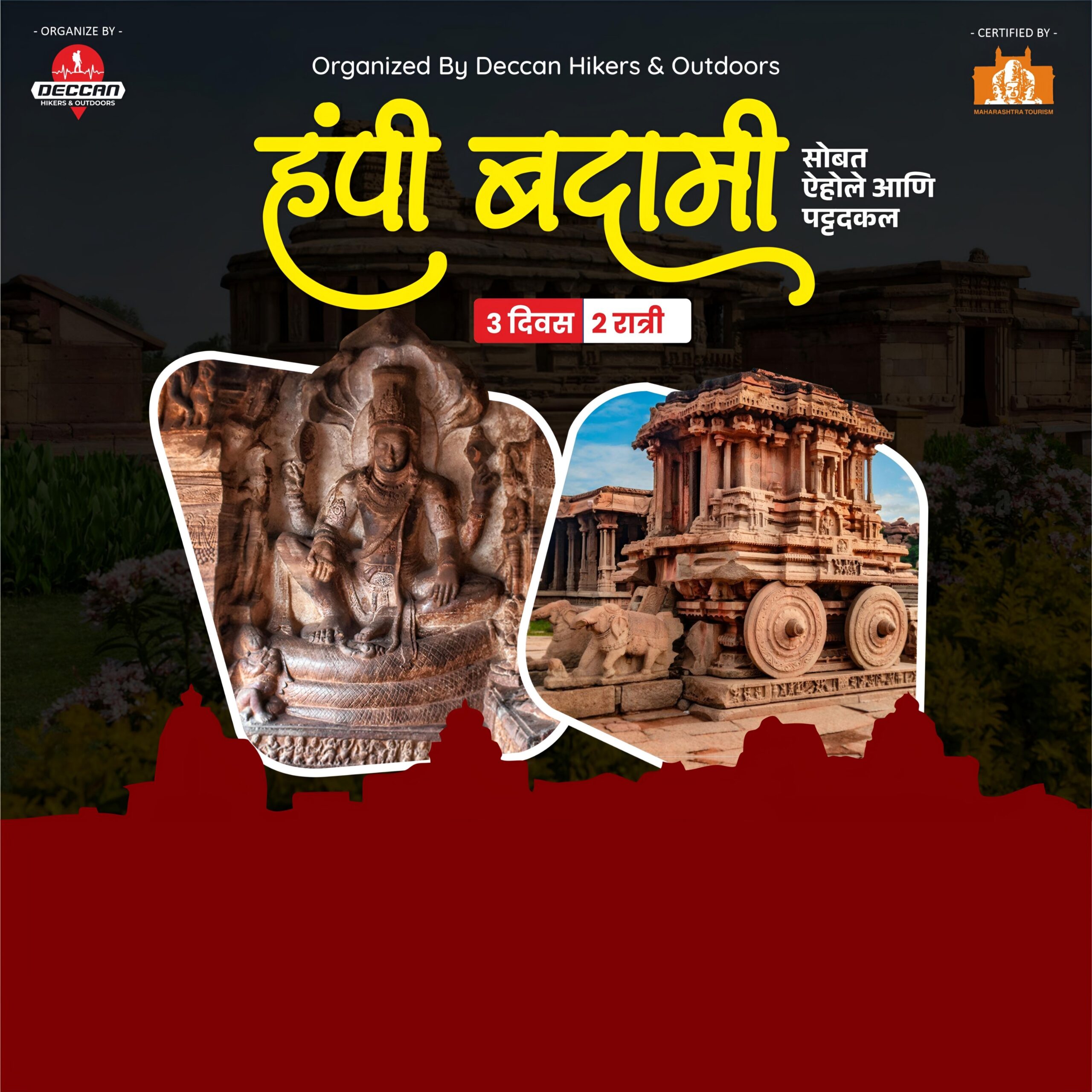 🏛️ Hampi Badami Backpacking Heritage Tour A Journey Through Time and Ancient Ruins Hampi Badami Backpacking is a heritage tour that takes you through the glorious remains of the Vijayanagara Empire and the Chalukya dynasty, revealing the architectural brilliance and cultural richness of Karnataka. From Hampi’s stone chariots and royal palaces to Badami’s red sandstone