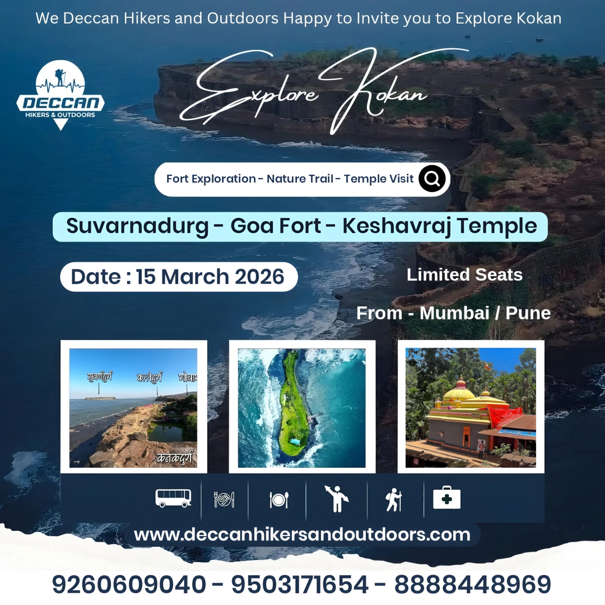 Embark on the Gadkot Parikrama 2025–26, a curated trekking series covering four iconic forts of Maharashtra — Raigad, Rajgad, Sudhagad and Pratapgad. Experience the rich Maratha heritage, breathtaking landscapes and thrilling trails with Deccan Hikers & Outdoors. Perfectly planned with expert trek leaders, safe transportation and smooth coordination from Pune and Mumbai, this journey